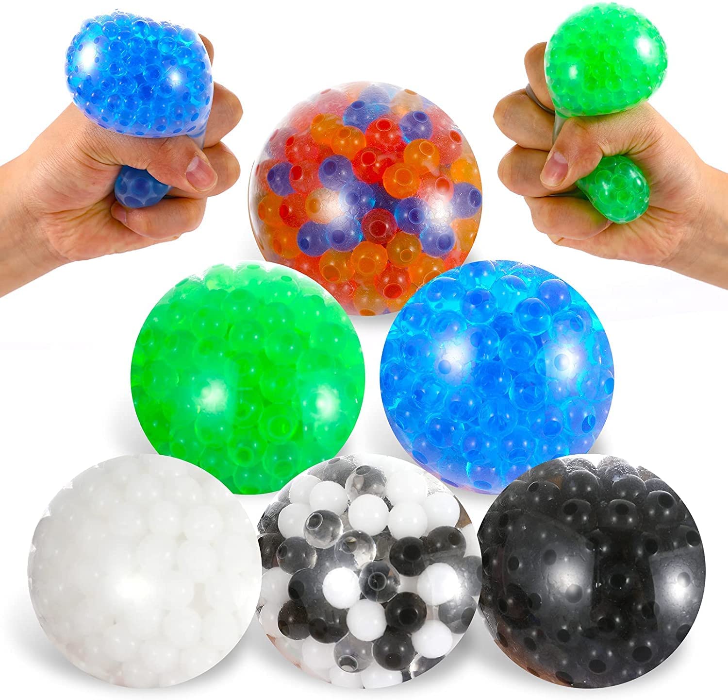 WANT STRESS RELIEF SQUEEZE THESE WATER BEAD BALL! -Soft and cute balls toys for children to relax, decompress and focus. They are useful for both kids and adults, especially those with ADD/ADHD, OCD, autism, or high anxiety levels. A great way to avoid fidgeting, skin and nail picking, and finger cracking. Portable during travel or for your children to bring to the classroom for stress relief or to have fun with friends. It can also help relieve stress and help you keep focus in your office. DURABLE & PORTABLE STRESS BALL- They are so durable because they are made of thick thermoplastic rubber (TPR) in the outer layer with small beads inside. It can be squeezed so many times and still get back to its original shape. Portable and travel-friendly ball toys you can place inside your pocket, backpack or portfolio. We also come with a storage box of easy storage and easy carrying. MULTI-PURPOSE AND HIGHLY DURABLE- Stress relief ball is a great relaxing toy for those who use computers and exercise their hands regularly. These grape balls can not only allow you exercise with fun, strengthen your hands, wrist and muscles, great for physical therapy, but also help improve focus in the classroom, during travel, at home or in office. Also, these stress-relief balls are highly durable and tear-resistant, and they can be used for a long time. SAFETY & EASY TO CLEAN – This stress ball pack is safe and easy to clean. It is made of natural thermoplastic rubber, hypoallergenic, providing a safe user experience. These fidget stress balls are not sticky, so they can keep your hands clean even after a long time of use. Greatly recommended to parents, therapists, students, and teachers, they can be used at home, school, and work. To restore clean, just wipe with a damp cloth or wash directly with water. AWESOME GIFT FOR KIDS AND ADULTS- Sensory fidget toys gift are always loved by both adults and kids. These water bead balls are eyecatching and can easily attract toddlers and adults attention and provide hours of fun outdoors and indoors. Your kids, wife, husband, friends, girlfriend, boyfriend, mother, father, or even grandparents will be surprised to get these soft squishy balls. These are also wonderful party favors, Christmas stocking stuffers, Easter basket fillers, birthday gift.