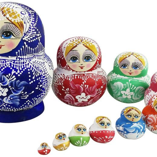Traditional russian nesting dolls/russian dolls/matryoshka dolls Contains 10 dolls with decreasing size placed one inside the other to appear as one Big belly shape,very cute and special,porcelain pattern,each one is in different color Kids will love these nesting dolls and spend time playing with them Also is a unique decoration and a wonderful gift to any one in any occasion