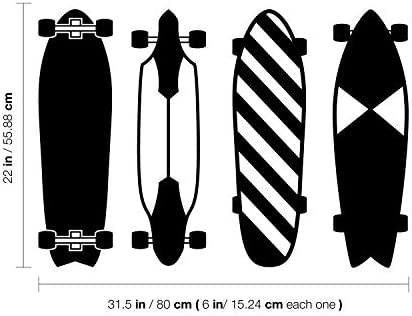 Our high quality vinyl decal Set of 4 Skateboards decal design comes in 22 inches by 6 inches. Each set comes with 4 skateboards stickers. The pictures are for display and inspiration only. All of our vinyl wall decals are manufactured with premium industrial grade Lutema self-adhesive vinyls. Our removable peel and stick wall art decal quotes, sayings and designs are the perfect way to make a statement without having to redecorate an entire room. Our vinyl sticker decals are the perfect way to make a statement in any bedroom, living room, kitchen, hallway, nursery or children’s bedroom, as well as dorm rooms, business offices, work spaces, gyms and restaurants. Enjoy a modern saying home decor vinyl wall decal quote in moments. Our decals can be applied to most clean smooth surfaces including interior walls, doors, windows, mirrors, cupboards, stairs, glass, laptops, luggage, car windshields and bumpers, thermos, coffee mugs and school binders. This peel-off vinyl decal is easy to remove with no residue left behind. Our peel and stick decal stickers include easy step by step instructions on how to effortlessly apply the vinyl. These self-adhesive, non-toxic vinyl stickers are waterproof, durable and will last for years without peeling, wrinkling or fading. The perfect addition to any indoor or outdoor room for both decoration and modern wall decal designs. Our inspiring quotes dont just brighten up the room, but brighten up the day. In general, vinyl lettering is one of the latest and greatest trends in home decoration. Because our products are high quality, they give the illusion of painted wall art without the mess, cost, or time. What are you waiting for Lets get crafty!
