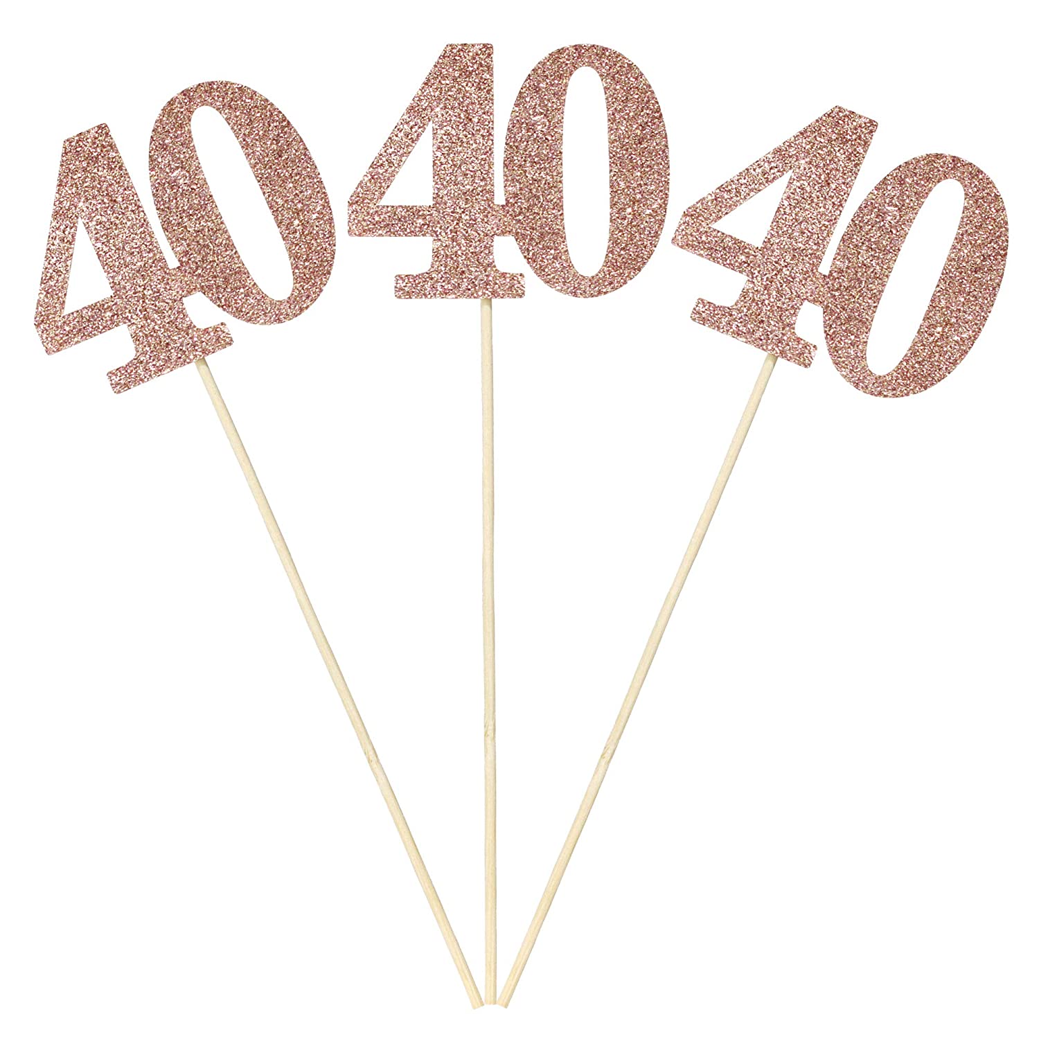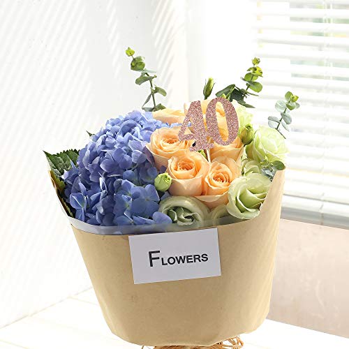 Set of 6 Number 40 Centerpiece Sticks Rose Gold Glitter 40th Birthday Table Centerpieces Flower Toppers Party Supplies