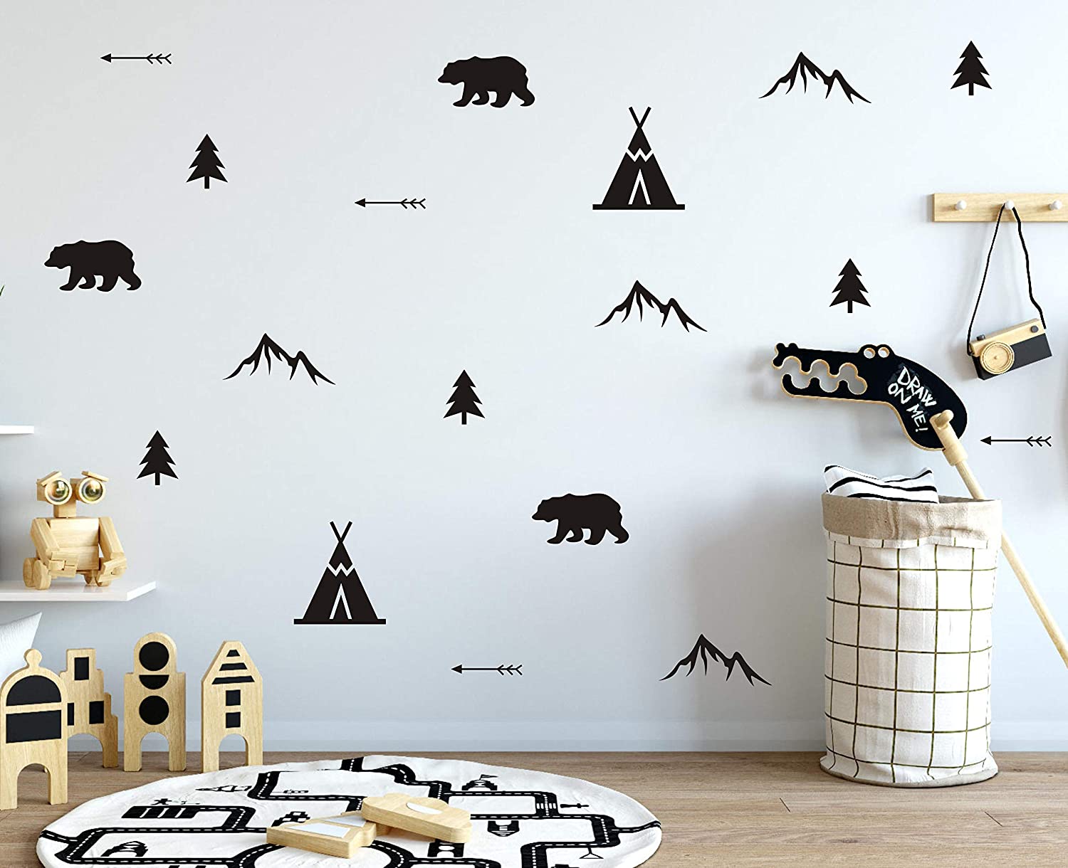 Set of Woodland Bears, Arrows, Teepees, Trees and Mountains Wall Decals, Vinyl Stickers for Bedroom, Living Room, School, Nursery Wall Decals A41