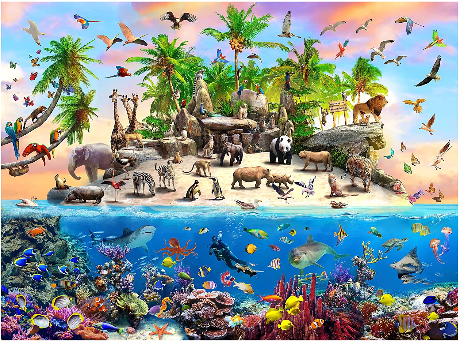 Shadzi Jigsaw Puzzles for Adults and Kids 500 Pieces, an Island of Life of Wildlife Charming Puzzles, Unique Piece Puzzle Educational Fun Games Toys (22.44 16.53 inch)