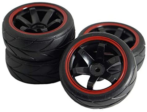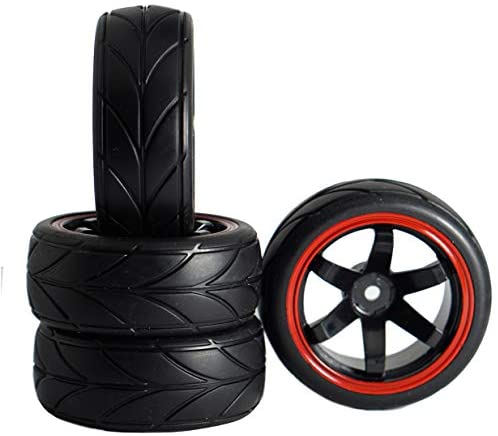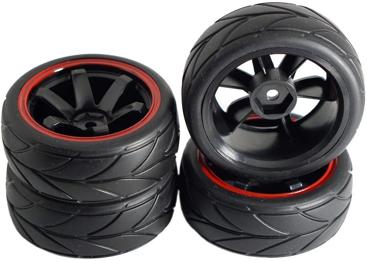 ShareGoo 12mm Hex Wheel Rims & Rubber Tires Compatible with Redcat HPI Tamiya HSP RC 1/10 on-Road Racing Touring Car (Pack of 4)