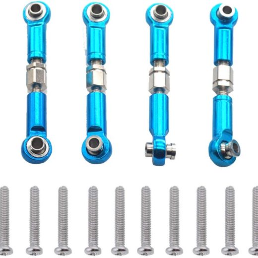 Compatible with Wltoys A949-A A949-B A959-A A959-B A969-A A969-B A979-A A979-B K929 K929-B 1/18 RC Cars Buggy Truck CNC machining accuracy. Increased strength and precision. High protection and long durability, provides better performance. Upgrade parts, easy to install,great strength. Material:Aluminium Alloy Replacement Part No.:18005 Adjustable Length:Overall (Min-Max) Approx 44mm-54mm Center of each hole (Min-Max) Approx 37mm-47mm Scale:RC 1/18 Color:Blue Weight:32g Package Includes: 6 x Metal Steering Servo Link 12 x Screws Note: The color of the item may vary slightly due to photography and your own computer or your phone Theres some little error from human measuring.