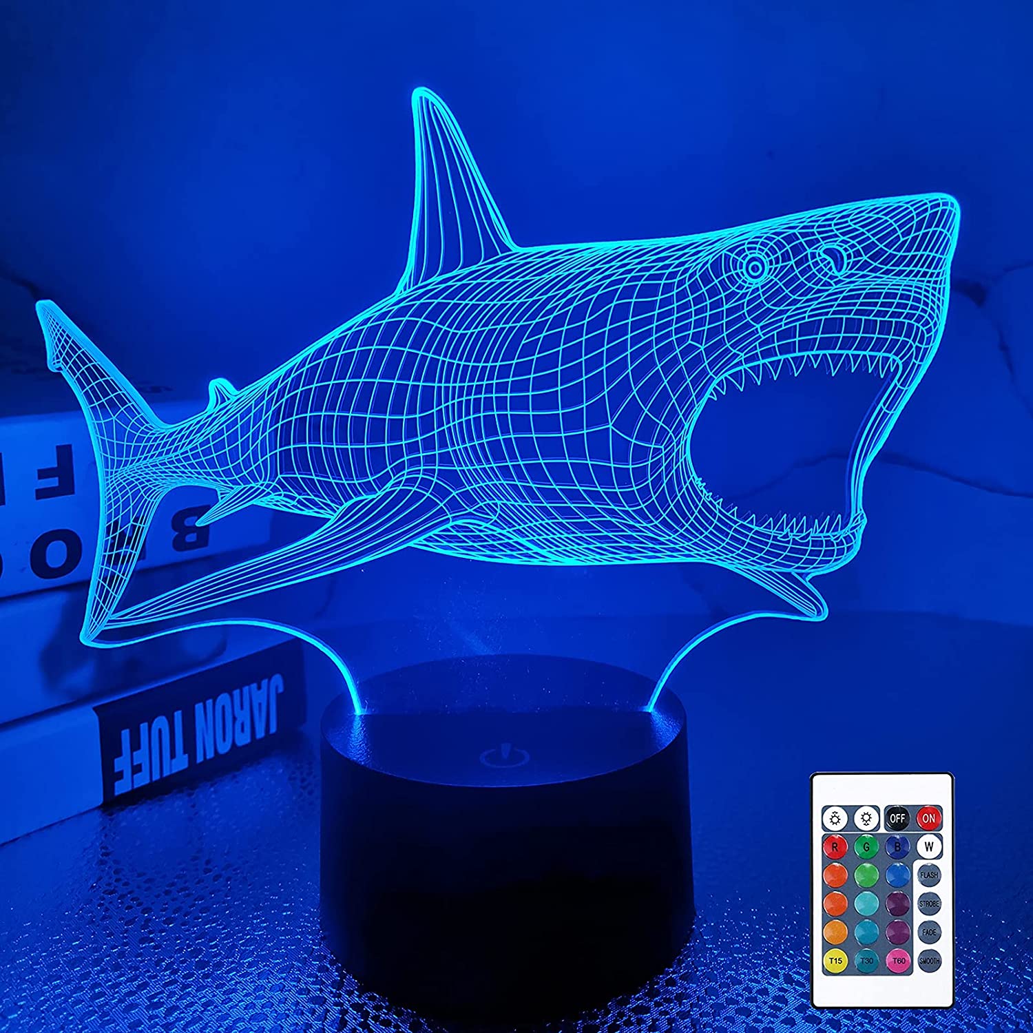 Shark 3D Illusion Night Light Ocean Animal Desk Table Lamp,16 Colors Remote Control LED Nightlight for Kids Boys Holiday Gifts