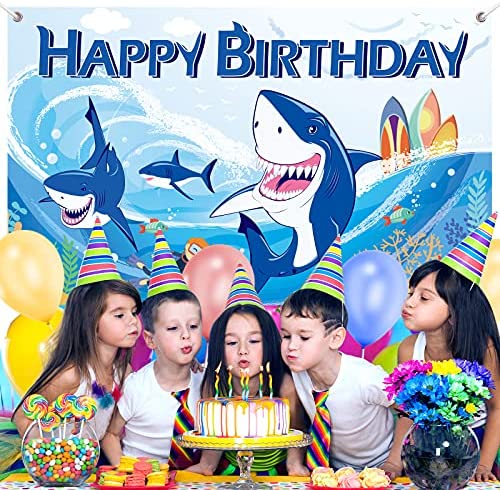 Shark Birthday Party Decorations Shark Backdrop Happy Birthday Banner Shark Birthday Sign Under The Sea Background Shark Themed Party Supplies for Kids 6x4ft