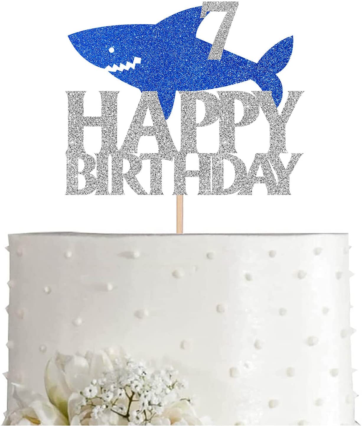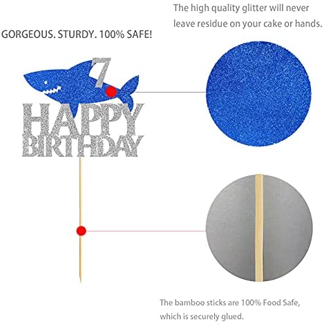 Be the first to review “Shark Happy 7th Birthday Cake Topper Blue Silver Glitter Boy Girl 7 Years Ocean Birthday Party Decoration” Cancel reply