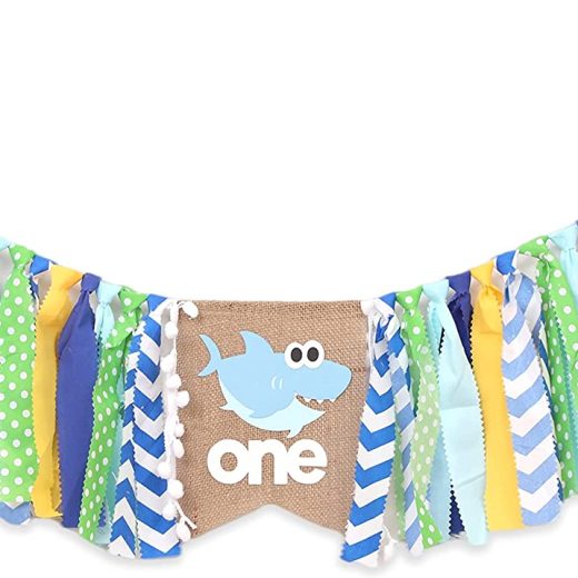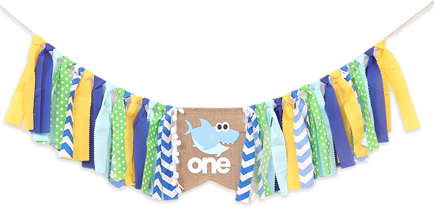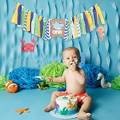 Shark Highchair Banner for 1st Birthday Party – Baby Shark Birthday Decorations, Under the Sea Party Decorations, 1st Birthday Decorations for Boys, Cake Smash Photo Props