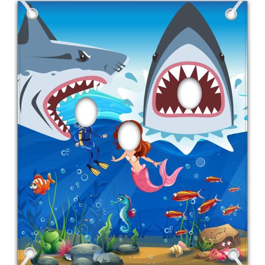 Shark Party Decorations Shark Photo Prop, Giant Fabric Shark Photo Booth Background, Funny Shark Theme Party Games Supplies for Shark Birthday Party 5x 4.3 ft