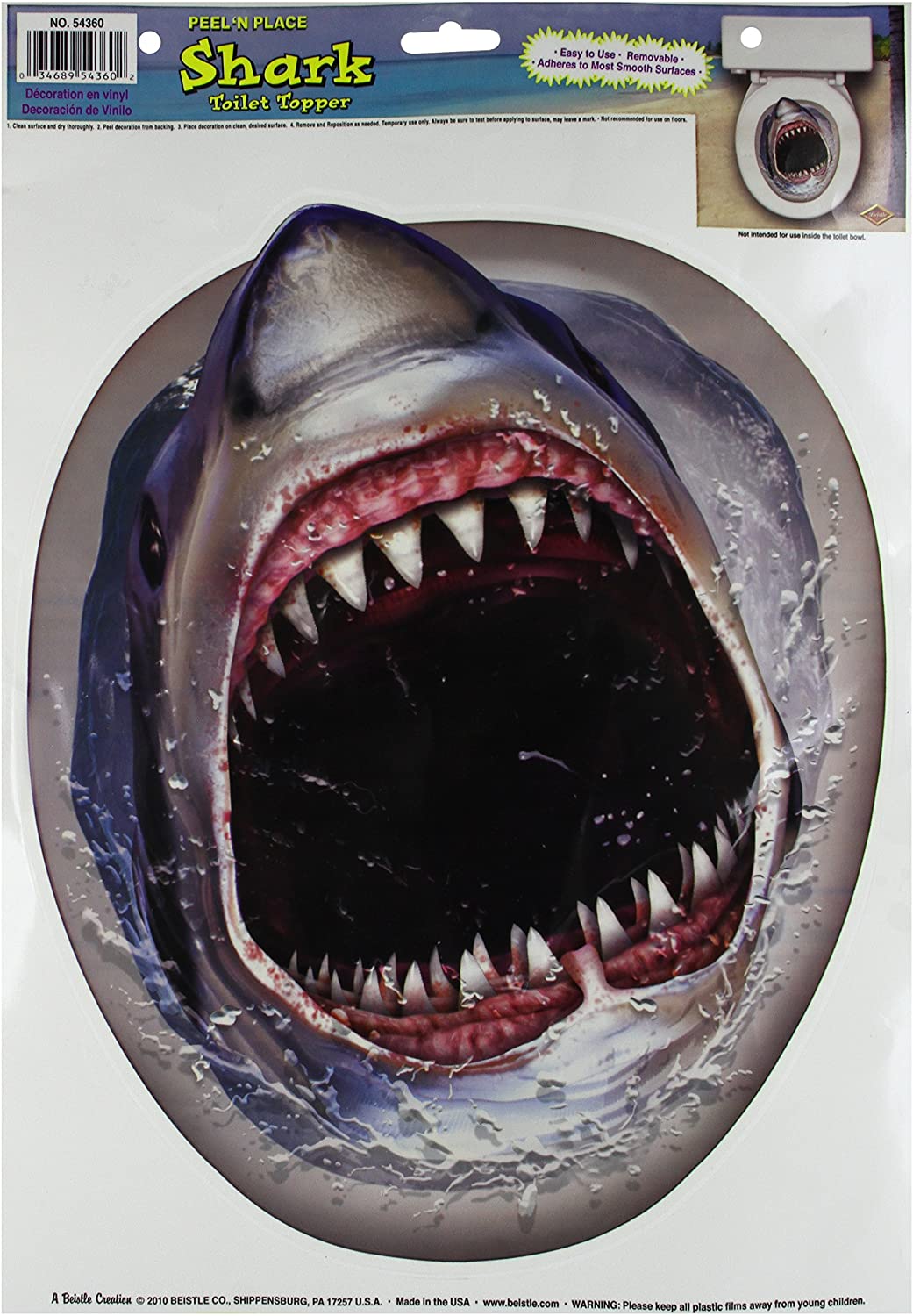 Beistle 54360 Shark Toilet Topper Peel N Place. This Peel N Place would make a great addition to your toilet for gatherings, parties or just for your own enjoyment.
