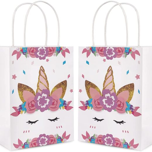 Lovely unicorn designThese unicorn party bags are printed with beautiful unicorn patterns. It will be very eye-catching and unique to use them to carry candys and toys, and the children at the party would love it so much. Set includs24pcs white unicorn party favor bags, enough for the entire party, each measuring 5.9 *3.2*8.3 inches, allowing for more toys and small gifts. High-quality materialsThis unicorn gift bag is made of thick kraft paper, strong and durable, great for guests to take away and can be reused. High-quality party gift bags These unicorn party gift bags are designed with very adorable unicorns. They can be made into perfect birthday party ingenious gift packages, so that they create a strong festive atmosphere for your childs birthday party. Perfect for all sorts of party The unicorn treat bags are widely applicable, can be used as gift bags, candy bags and snack bags. They are perfect for childrens birthday party, baby shower and other unicorn themed parties.