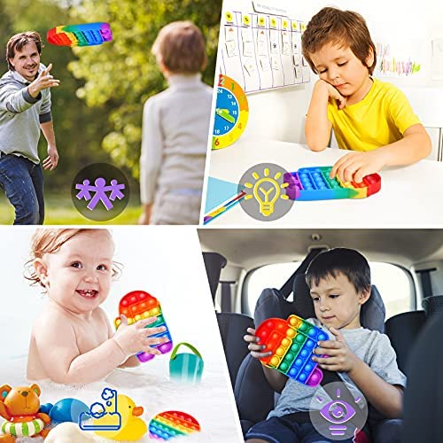 Functional Children Toys & Games Pressing the bubbles of pop fidget down and making slight popping sounds, the push pop bubble fidget toys for kids with anxiety relieve stress for restoring mood for ADHD kids or autism sufferer, provide learning & education resources for mental development, logical thinking training and mental arithmetic ability, improve concentration for OCD and ADD kids. The squeeze toys for kids anxiety also for stressful adults. Safe Food-Graded Silicone Material Made of quite safe silicone fabric of high quality, non-toxic and tasteless. The anxiety relief toys for teens for school can be served as fidget toys due to its super flexibility. Soft and comfy to touch. Waterproof and washable to clean. Lightweight and portable to carry. Durable and reusable to use for many years. Home Essentials Figet Toys for Children, Parent & Child Sensory fidget toys for autistic children 6-8 or 7-10 teens girls and boys. This pop fidget toy cheap is easy to play. Just press the bubble, then flip it over and start again. The bright colors and pleasant popping sounds make kids enjoy the joy of pressing. Focusing attention on games let noisy child quiet down. Parents can get relaxed and release stress by playing with children. Promote parent-child communication. Puzzles & More Gameplay 2 players take turns pressing down any number of bubbles they wish. You can play the easy game anytime and anywhere, at home and outdoor, at bath or in car. The bubble popping sensory toy could be coasters as well. And explore more gameplay like tiktok trend items. Included Package & Lifetime Guarantee The pop fidget toy contains 1 rainbow alient figet sensory toys. Small size and light weight. Cheap but awesome gifts for your boys and girls, friendschildren. We offer 100% full refund or replacement resent or unconditional return for the figetsss toys if there’s any problem about our products.