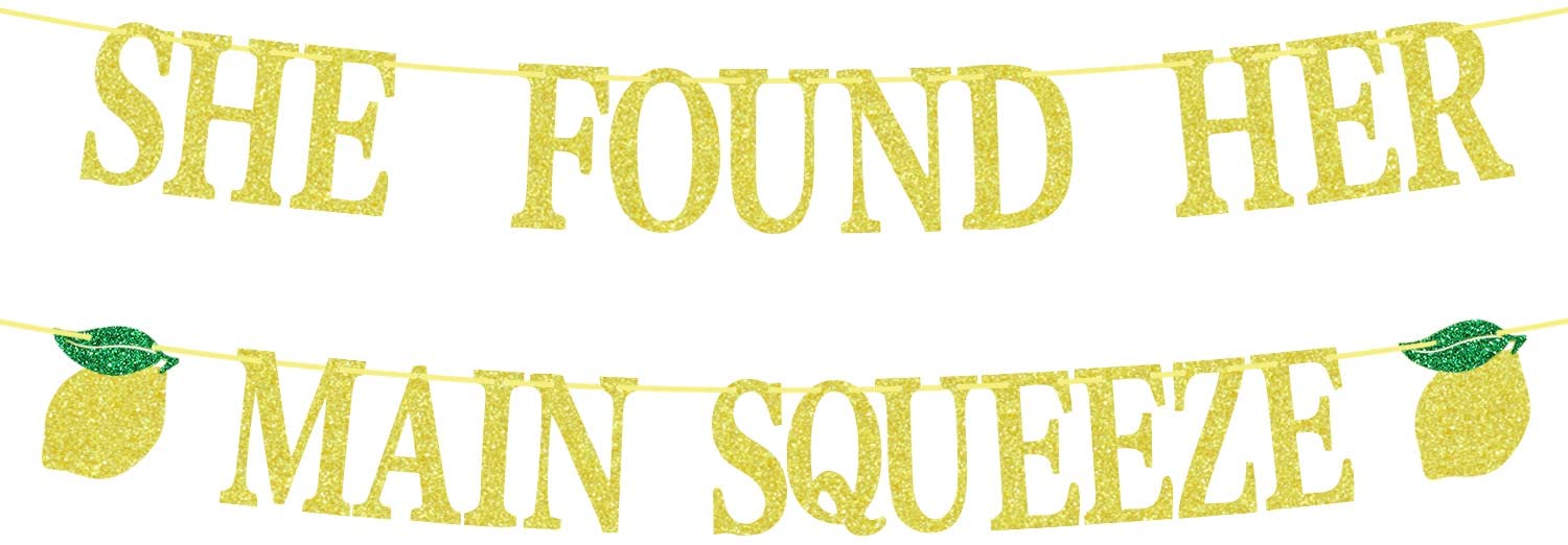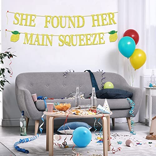 She Found Her Main Squeeze Banner – Lemon Citrus Theme Bridal Shower Bride to Be Wedding Engagement Party Decoration Supplies(Gold and Green)