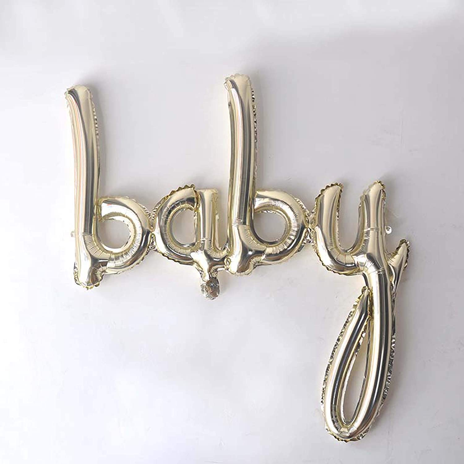 SHENLI Jumbo Baby Letter Balloon Baby Script Balloon Banner Letters 40 Inch White Gold Baby Balloon Large Balloon Letters Combination Alphabet Mylar foil Balloons for Baby Shower Gender Reveal