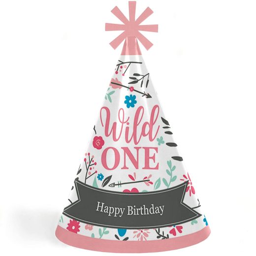 Everyone will be ready to celebrate the guest of honor’s birthday when wearing a She’s a Wild One party hat. This set of 8 (Standard Size) birthday party hats is a great addition to your event and is sure to get everyone smiling – especially the guest of honor! Each She’s a Wild One – Cone Happy Birthday Party Hats for Kids and Adults perfectly themed and has a festive star at the top. These party hats even come with a “Happy Birthday” printed on them! Be sure to have your camera ready because this She’s a Wild One party hats are going to give you some great photos!
