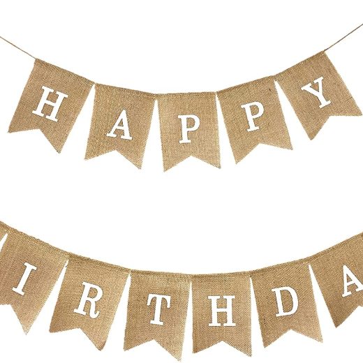 Reusable 2 Piece Burlap Banner. Burlap piece size: 5 inches x 7 inches (W x H). Color: White print on rustic burlap. String length: Happy 8 feet an…
