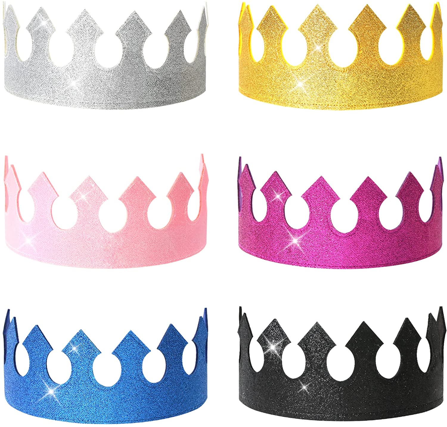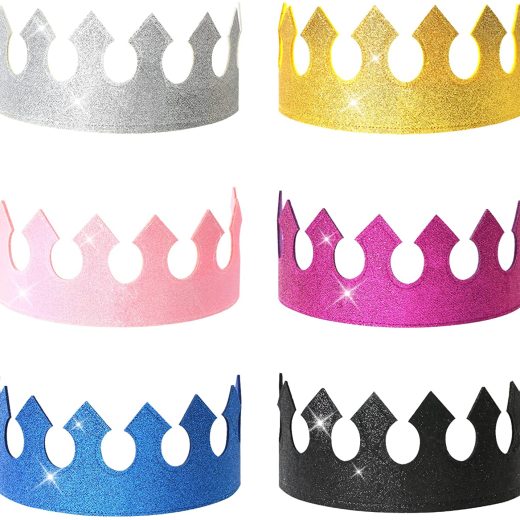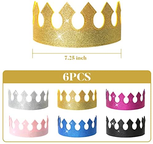 What You Get – 6PCS Glitter Felt Crowns (in 6 different colors, individually packed) One Size Fits Most – Every party crown comes with an adjustabl…
