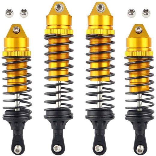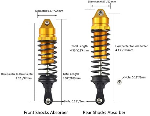 Shock Absorber Front & Rear, Aluminum Alloy Assembled Springs Damper for 1/10 Traxxas Slash 4×4 4WD RC Cars Upgrades Option Parts – 4PCS (Gold)