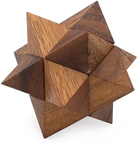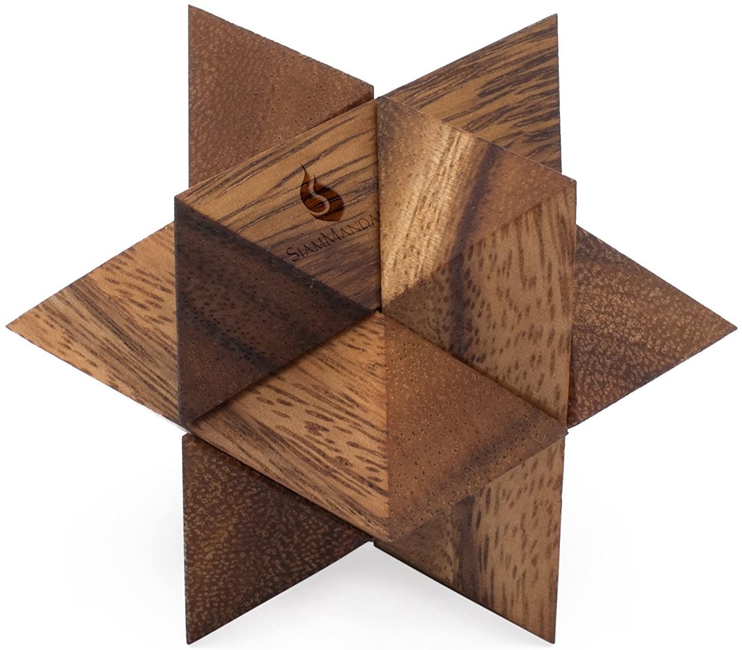 Shooting Star Puzzle: 3D Brain Teaser Wooden Puzzle for Adults Classic Handheld Interlocking Mechanical Puzzle from SiamMandalay with SM Gift Box(Pictured)