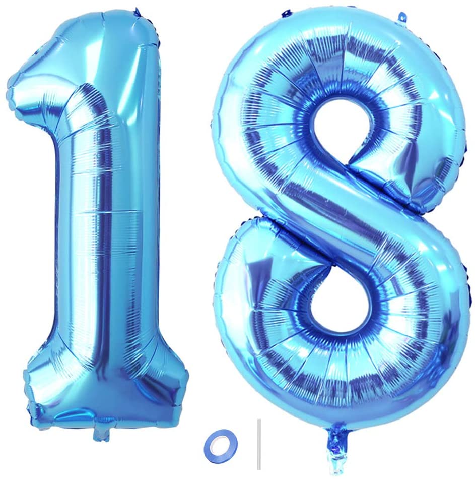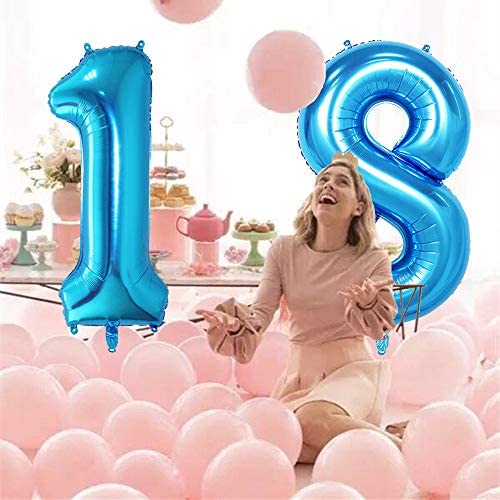 Shuxy 2pcs 40 Inch Number Balloon Foil Balloon Number 18 Jumbo Giant Balloon Prom Balloon Mylar Huge Number Balloon for Birthday Party Decoration Wedding Anniversary, XXXL Blue 18 Number Balloon