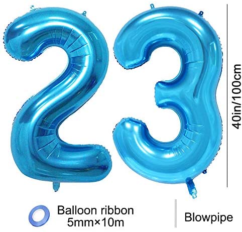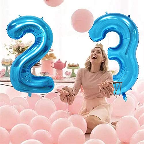 Shuxy 2pcs 40 Inch Number Balloon Foil Balloon Number 23 Jumbo Giant Balloon Prom Balloon Mylar Huge Number Balloon for Birthday Party Decoration Wedding Anniversary, XXXL Blue 23 Number Balloon