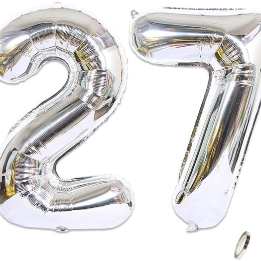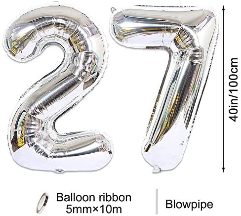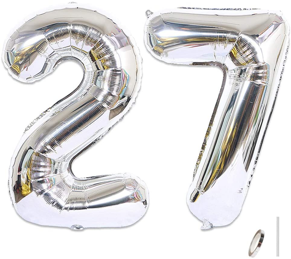 Shuxy 2pcs 40 Inch Number Balloon Foil Balloons Number 27 Jumbo Giant Balloons Prom Balloon Mylar Huge Number Balloon for Birthday Party Decoration Wedding Anniversary, XXXL Silver 27 Number Balloon