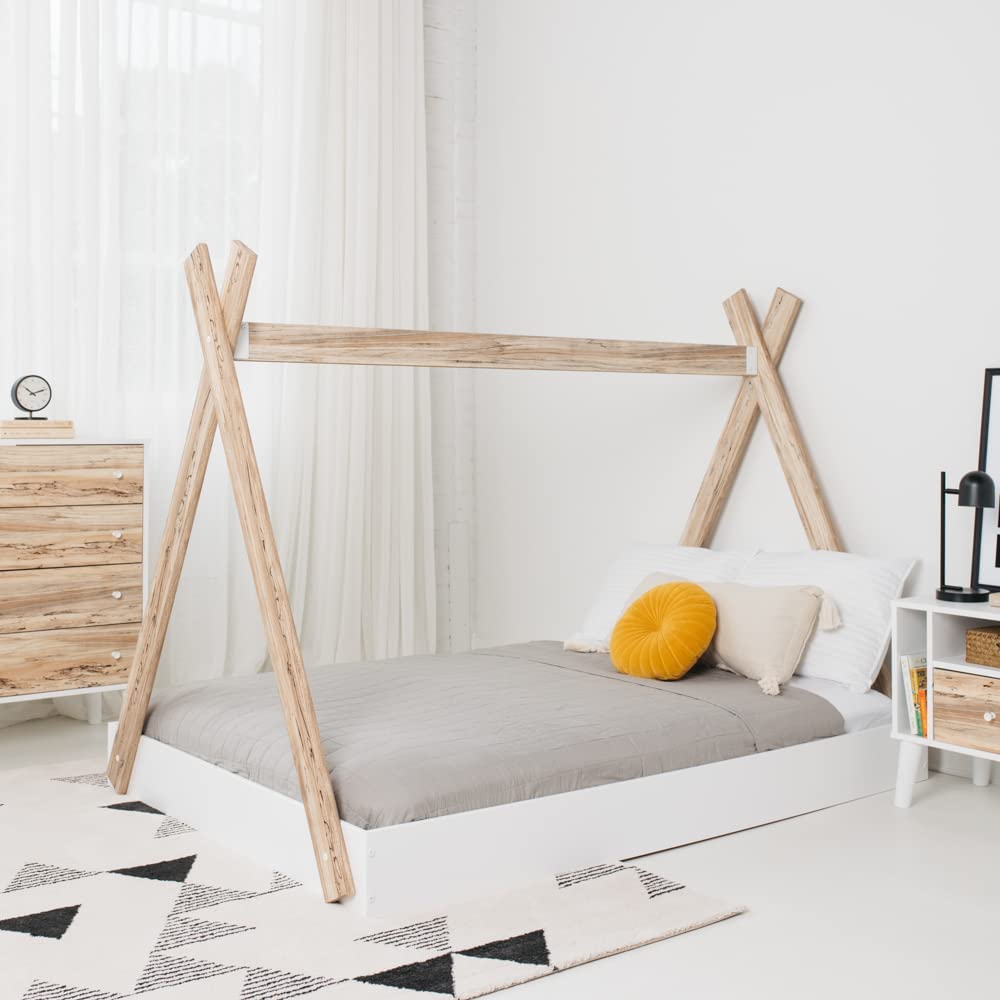 Signature Design by Ashley Piperton Contemporary Youth Tent Bed Frame, Full, Natural Wood & White