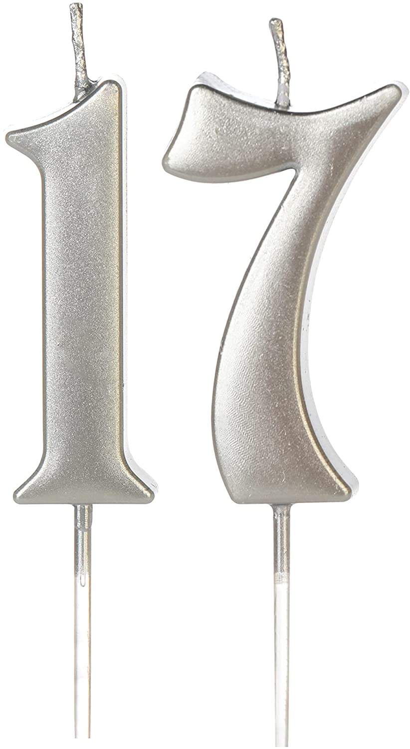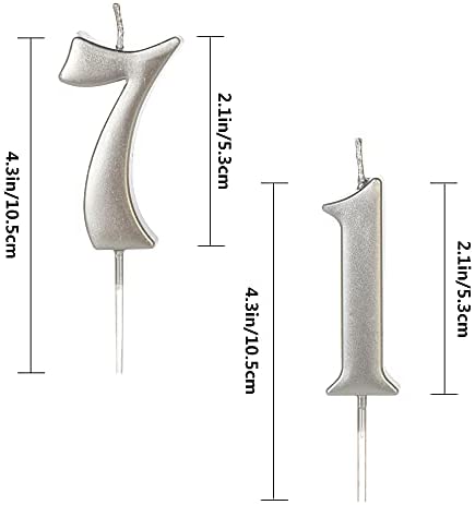 Silver 17th & 71st Number Birthday Candles for Cake Topper, Number 17 71 Glitter Premium Candle Party Anniversary Celebration Decoration for Kids Women or Men