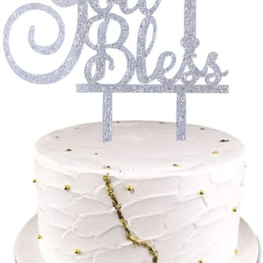 Silver Acrylic God Bless Cake Topper is perfect for Your Childs Baptism, First Communion Party, Christening, Wedding , Baby Shower, Thanks Giving d…