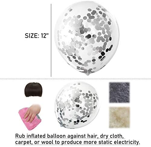 Nice Party Accessory — Package of 24 clear balloons prefilled with silver confetti, each balloon has undergone rigorous testing to reduce the defect rate as much as possible. How to Use — Before inflating the balloon, spray a little bit of water into the balloon and rub the confetti with your hands or hair repeatedly to distribute them uniform inside the balloon, so that the moisture helps the pieces of confetti stick to the balloon. Notice — If you fill in helium, please note that the confetti balloons float time is more short. The reason for the balloon falling is that the helium molecule is too small, not that the balloon is bad. So strongly recommend fill them with air, and there are some confetti dots in the balloons, don’t let babies under age 3 to get the balloons. Premium Thicker Material — These balloons are made of safe natural latex material which is durable, long-lasting and Eco-friendly, diameter of the balloon is 12 inches when fully inflated. 24 pieces of balloons which is plenty for party decorations, after parties, you may pop the balloons and let the confetti fall all over which increase lots of fun to the party! Risk-Free Purchase — If you arent satisfied with your purchase. Any problem please contact us first time to service for you. Quick response, 24 hours Online.