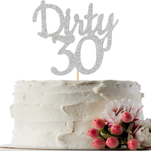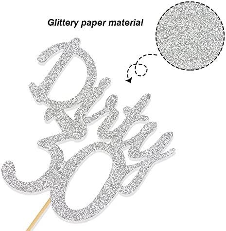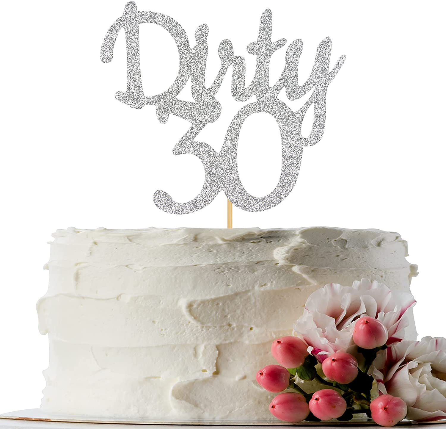 Silver Glitter Dirty 30 Cake Topper – Thirty Sign – Happy 30th Birthday Party Decorations Supplies
