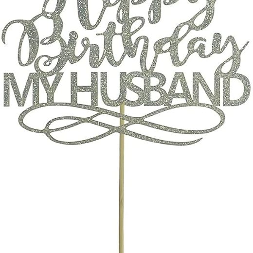 Silver Glitter Happy Birthday MY HUSBAND Cake Topper, Husband Birthday Party Decoration