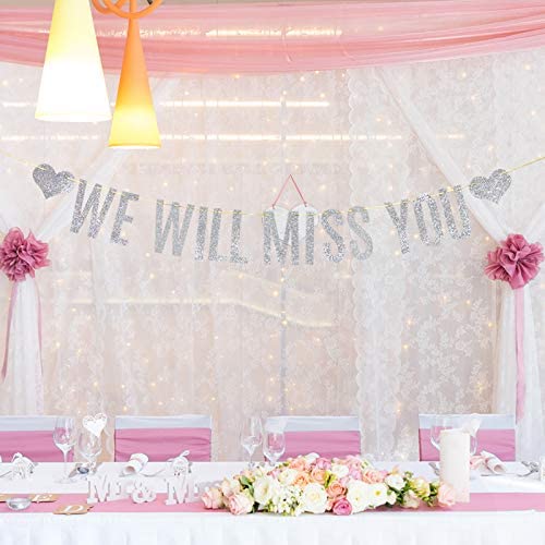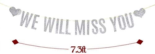 Silver Glitter We Will Miss You Banner Farewell Party Bon Voyage Retirement Party Decorations