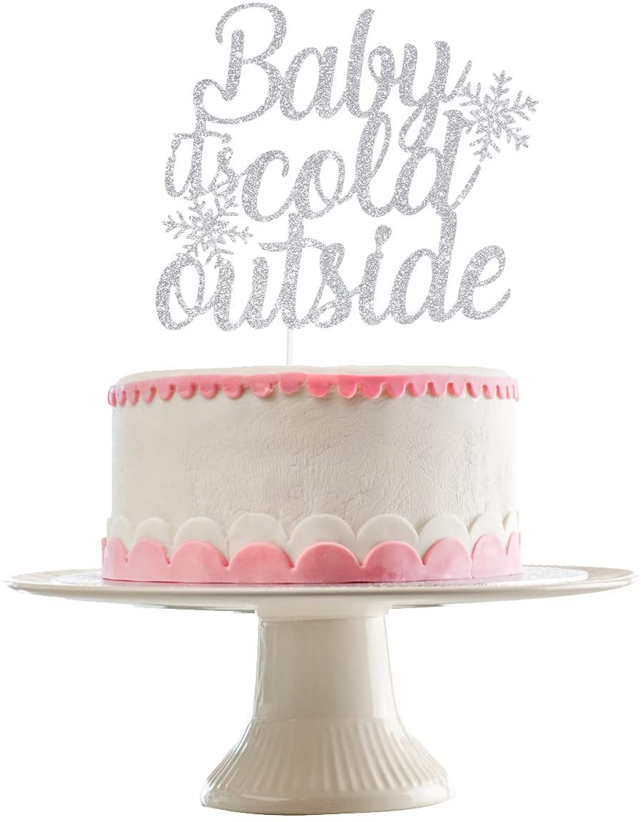 Silver Glittery Baby Its Cold Outside Cake Topper- Snowflake Baby Shower Decorations,Winter Wonderland Baby Shower Decorations,Winter Kids Birthday Party Cake Decor