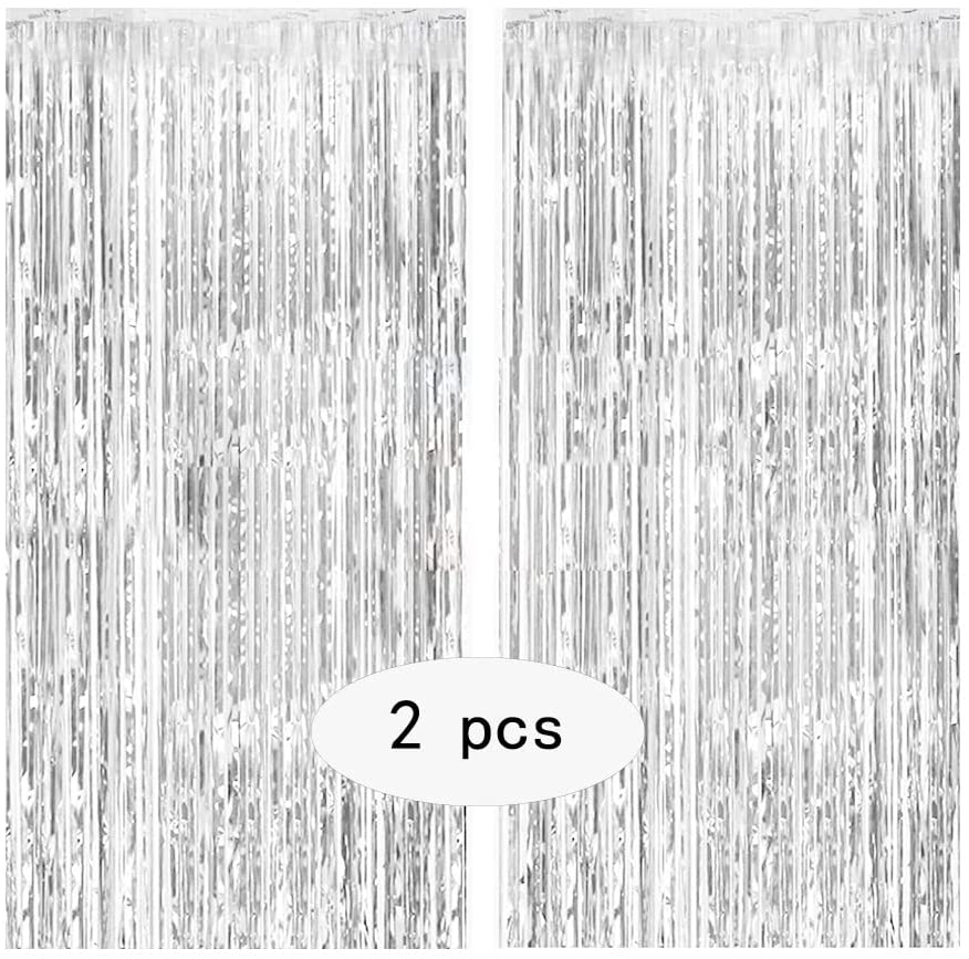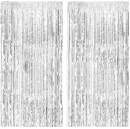 Silver Metallic Tinsel Foil Fringe Curtain Party Decorations, Festival / Wedding / Birthday / Anniversary / Holiday Celebrating Theme Party Backdrop