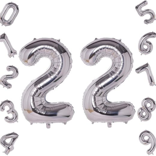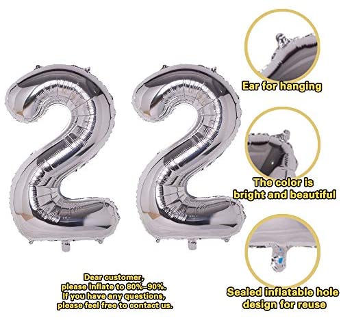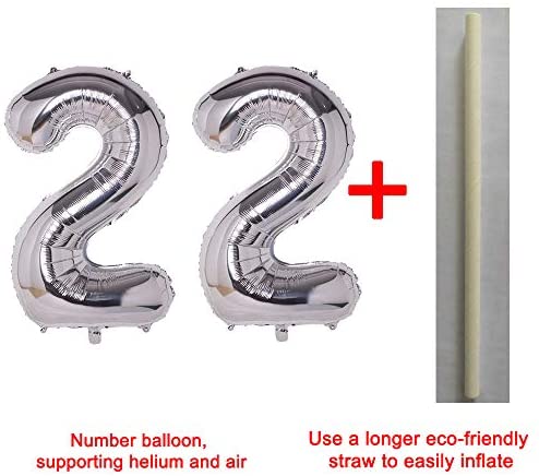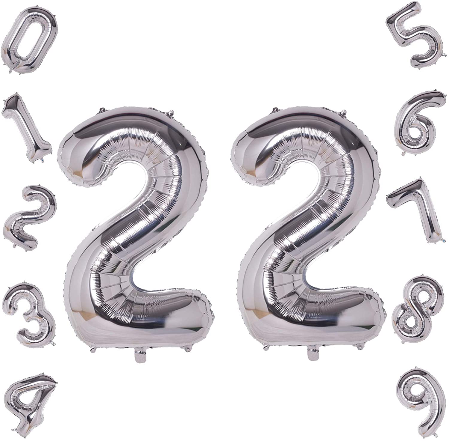 Silver Number 22 Balloons,40 Inch Birthday Number Balloon Party Decorations Supplies Helium Foil Mylar Digital Balloons (Silver Number 22)
