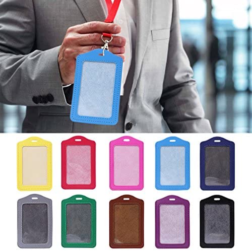 SimpleLif Soft Leather ID Badge Holder Wallet Card Pockets Safety ID Window Business Work Card Holde Vertical Type