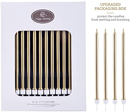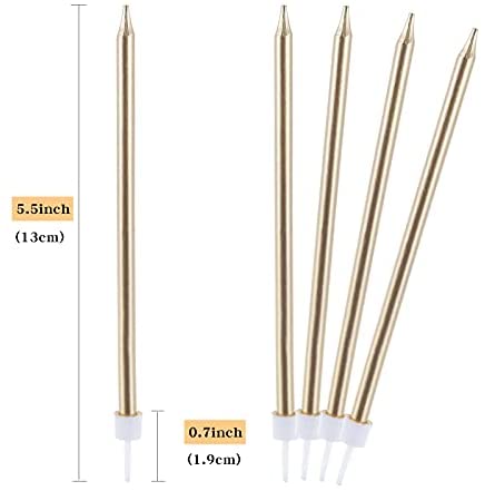 ?Gorgeous and Tall Birthday Candles – 5.5 inches in length with 0.7 inches removable holder, its longer than normal candles. The top is tapered and the candle holder is slender. And you can cut to any length you want with a scissor. These long skinny candles are pretty and make any cake much classier. ?Perfect Packaged Birthday Candles for Cake – Melt, bend, break, crack, damage? With upgraded eco-friendly packaging, you are free from these problems. Before we ship the birthday candles, we checked them carefully and packaged them securely to make sure they will arrive intact. ?Great Quality Cake Candles – The birthday candles are easy to light, burning slowly so you can save them and reuse them multiple times. The birthday candles have a cap and spike at the base to help with stability. A beautiful addition to your cake. For ANY reasons if you are unhappy with the birthday candles, we offer a new replacement or full refund. ?Environment-Friendly Birthday Cake Candles – We use quality Eco-friendly, non-toxic materials to make these magical candles, smokeless, odorless, and no-wax drip on the cake. Its a high-quality and elegant candle with an attractive flame that light easily and wax lasts longer. ?Wide Usage Long Birthday Candles – Its not only a perfect addition to birthday cakes, homemade cakes, mousse cakes or cupcakes but also a good partner for any celebrations, such as a wedding, special night, party or baby showers. It will make the event special and memorable.