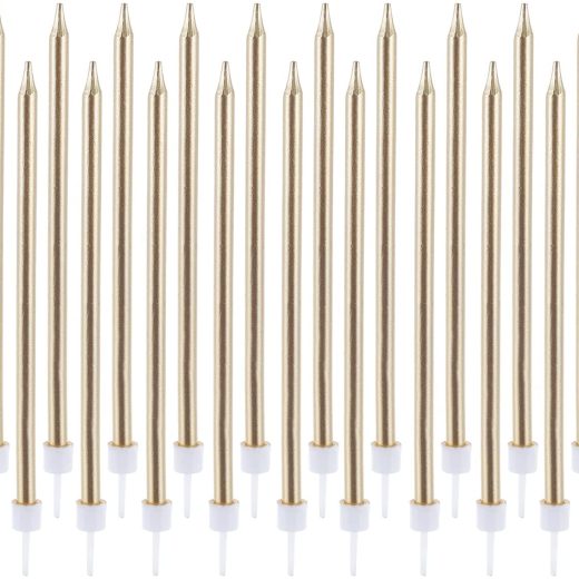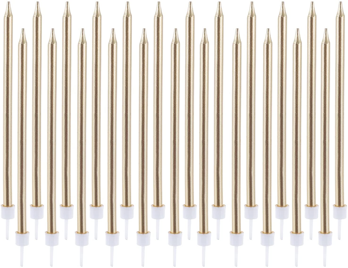 Sivim Birthday Candles 24 Count Tall Gold Cake Candle in Holders Long Thin Cupcake Candles for Birthday Wedding Party Decoration