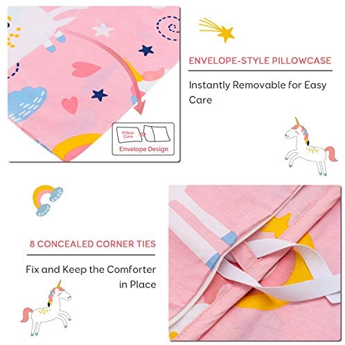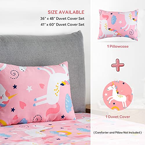 Sivio Kids Duvet Cover Set for Kids Weighted Blanket, 100% Cotton, 2 Pieces Toddler Bedding Set Gift for Boys and Girls, 36 x 48 Inch, Pink Unicorn