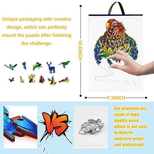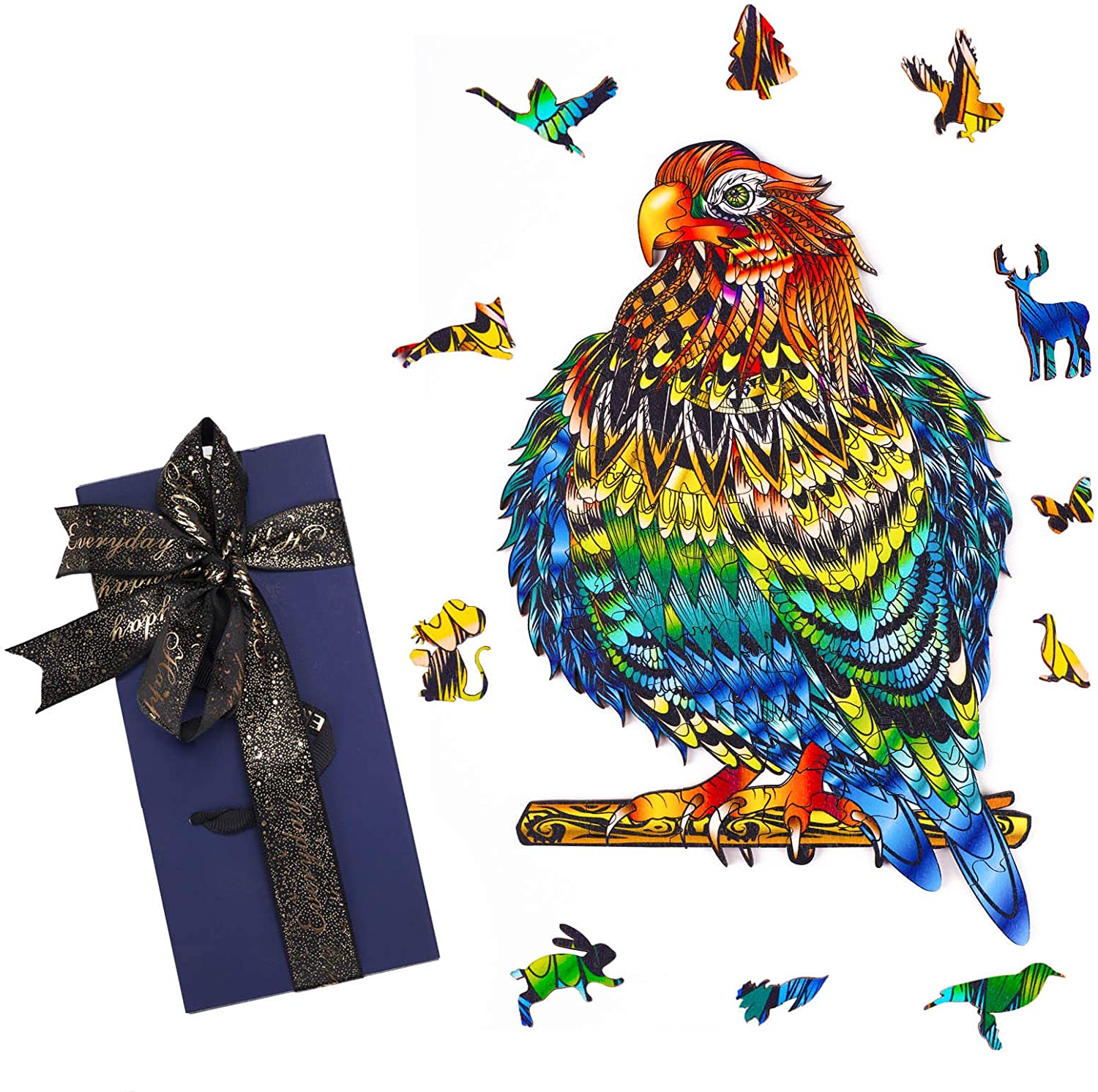 Sjwspw Eagle Wooden Jigsaw Puzzles for Adults and Kids,Ufnique Shaped Colorful Charming Owl Liberty Animals Wooden Puzzle as Best Gift for Adults, Kids, Family, Friends, Decor, Wall Art 5.9 × 10.2 in