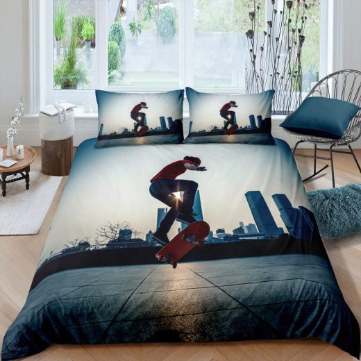 Skateboard Bedding Set for Boys Teens Bedroom Kids Child Gift Extreme Sports Theme Comforter Cover Nature 3D Printed Duvet Cover Set Modern Fashion Quilt Cover Decor 3 Pcs Full Size