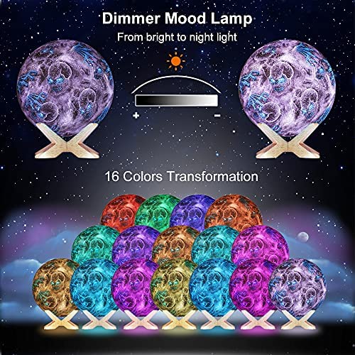 Skull Moon Lamp,Halloween Decorations light,5.9 Inch 16 Colors 3D Night Light with Wood Stand, Touch & Remote Control &USB Rechargeable Haunted House Creepy Scene Props Indoor Decor and Party Supplies