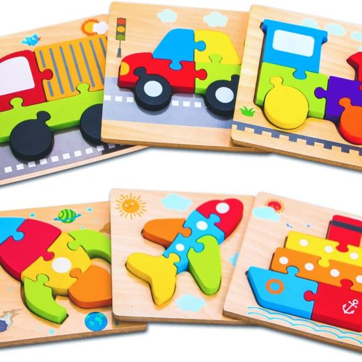 SKYFIELD Wooden Vehicle Puzzles for 1 2 3 Years Old Boys Girls, Toddler Educational Developmental Toys Gift with 6 Vehicle Baby Montessori Color Shapes Learning Puzzles, Great Gift Ideas