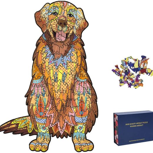 SLDRZN Wooden Puzzles for Adults,Wooden Jigsaw Puzzles for Adults,Animal Shaped Puzzles,Golden Dog Unique Shaped Magic Puzzles,Great Gift for Adults and Kids,100 Pieces,9.45×6.3inch