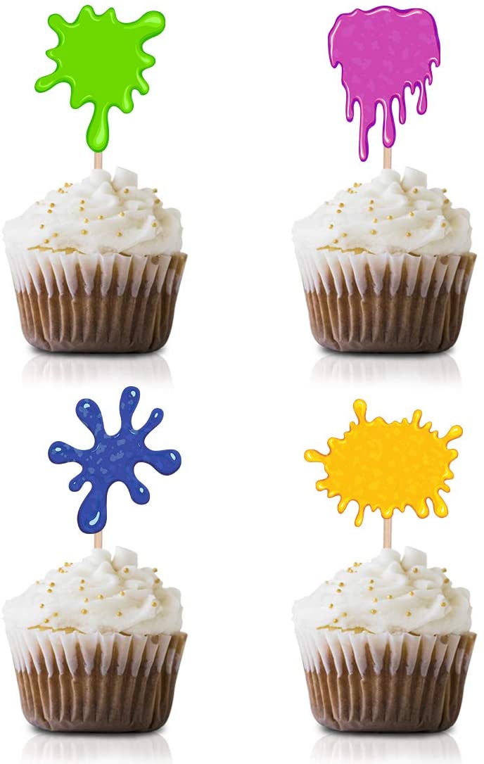 Slime Cupcake Topper Picks, 24-Pack Painting Art Kids Birthday Party Supply Decorations