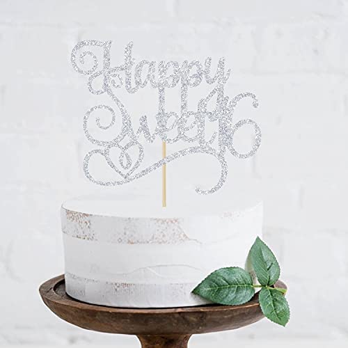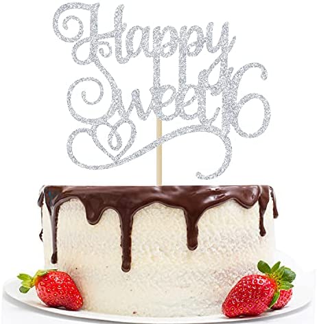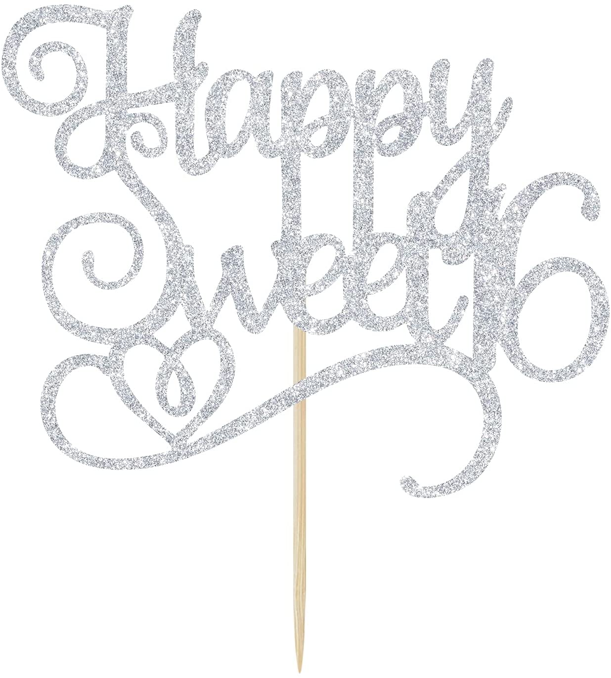 Sliver Glitter Happy Sweet 16 Cake Topper, 16th Birthday Party Decorations Supplies