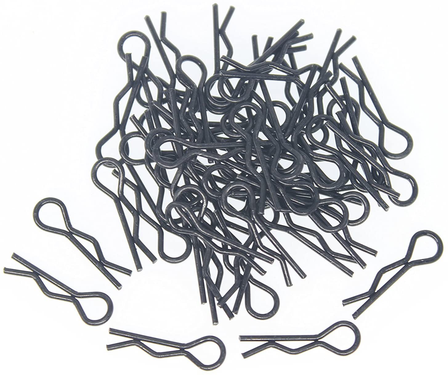 Small 1/16 1/18 Body Clips Bent Springy R Pins Black RC Car Shell Replacement Parts (50-Pack)