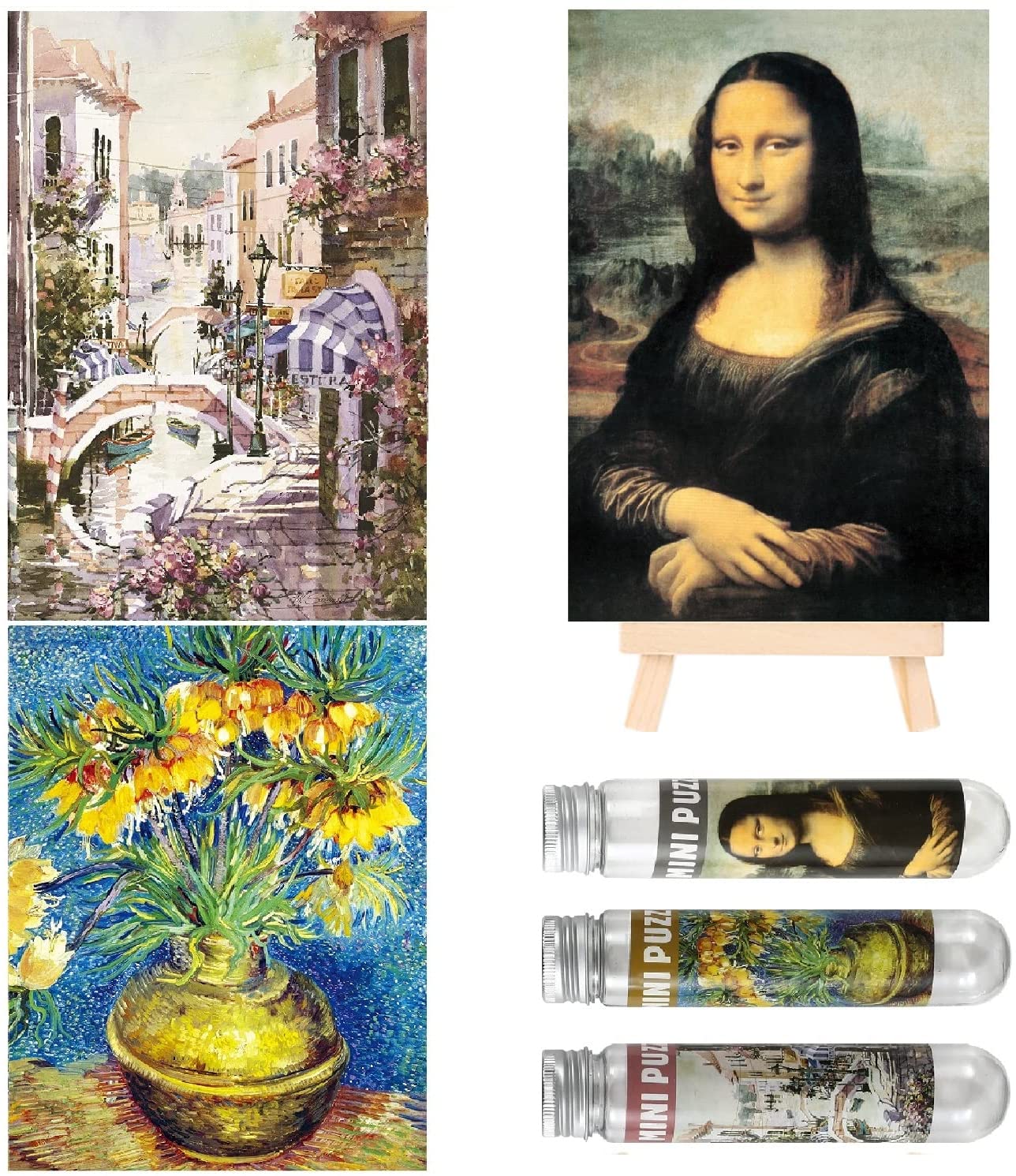 Small Jigsaw Puzzles for Adults Challenging Puzzle Mini Jigsaw Puzzles for Adults 150 Pieces Oil Painting Mona Lisa Venice Home Decor Puzzles 6 x 4 Inches, 3 Pack,Mini Easel Included