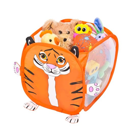 Smart Design Kids Pop Up Organizer with Animal Print – VentilAir Mesh Netting – for Toddlers, Baby Clothes, Plushies, and Toys – Home Organization – Cube – 10.5 x 11 Inch – Orange Tiger